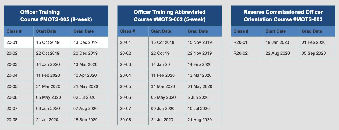 Here is the website: scroll through to see the schedule: https://www.airuniversity.af.edu/Holm-Center/OTS/