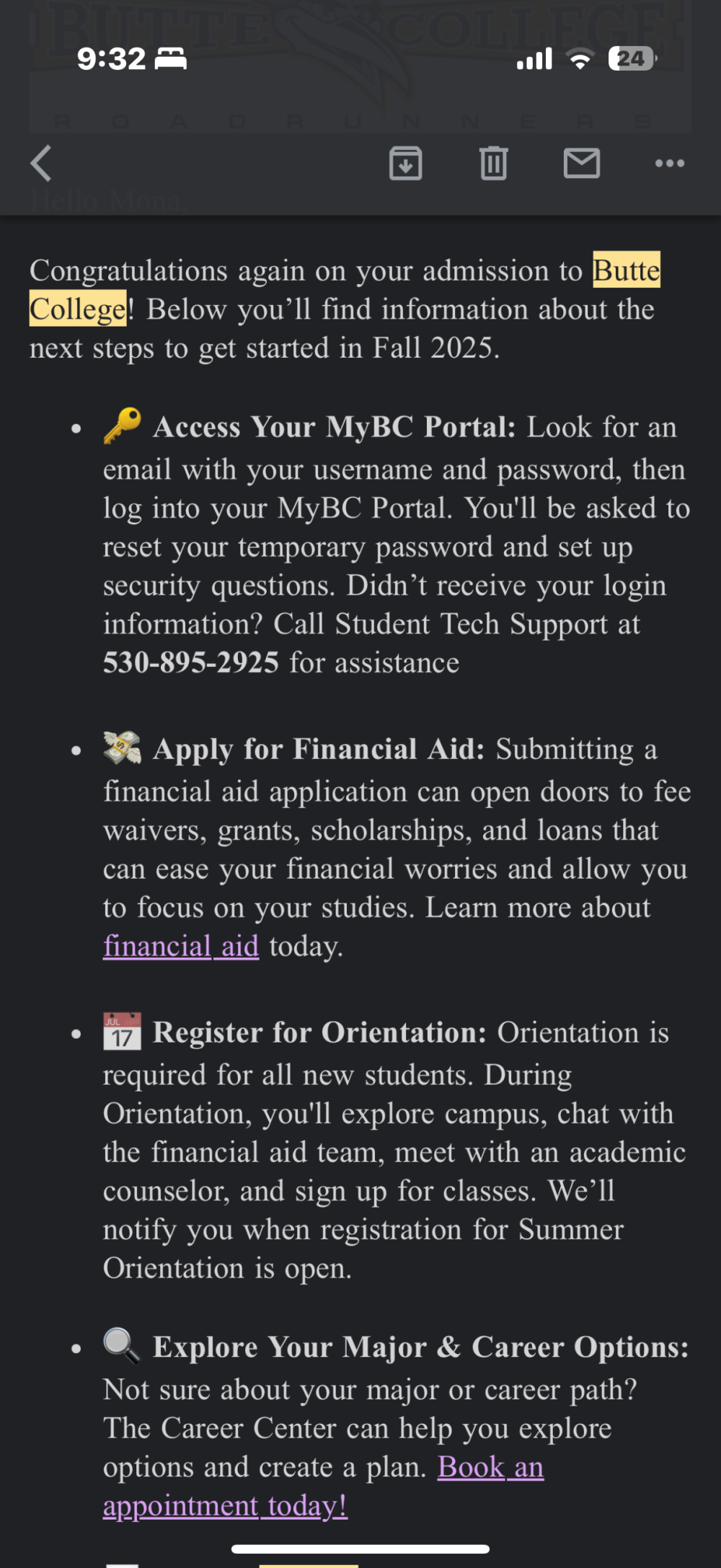 yeah, it's just a welcome to butte college email but I got one in January when I just applied to the school and it seems to be a strange time to just randomly get another one.