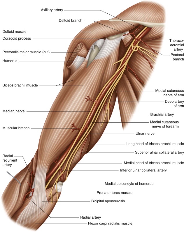 Just practice finding the pulses on yourself, then mark the location you found it at with a marker. do it bilaterally for the brachial, radial, pedal, and yes, the carotid pulses BILATERALLY every day... you'll become pro in no time at all when finding it on your future patients! JUST visualize exactly where the radial artery is ON YOU... then go for it in your patient. You'll get really good and really fast at it like you've been doing it your whole life before the year is out. if you can't find the pulse for the right and left brachial arteries... extend the elbow and poke around the antecubital fossa. THEN MARK IT SO YOU CAN FIND IT THROUGHOUT THE DAY. you'll be pro in no time.