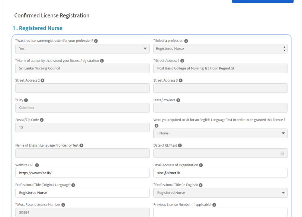 However, the "Professional Title (In English)" field in the License/Registration section is already filled as "Registered Nurse", and the field is now read-only. I have tried: