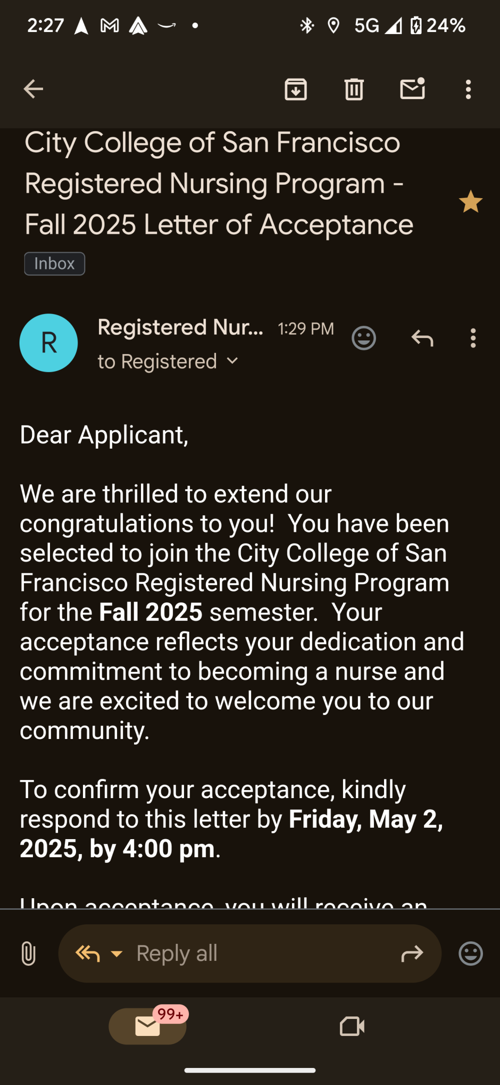 I applied to the RN program at CCSF.