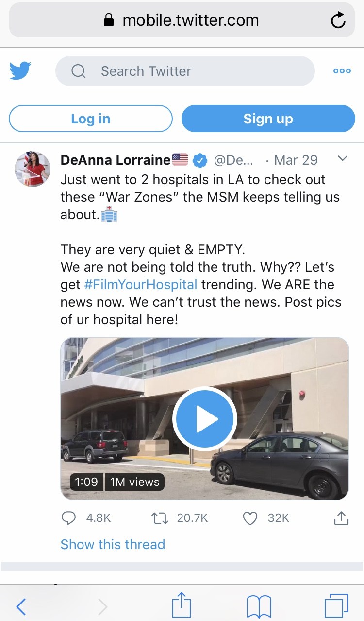 Republican Politician Deanna Lorraine is making it her duty to “expose” hospitals because she does not believe in the “war zone” happening INSIDE of hospitals. I say that because obviously she is only allowed to film outside hospitals. She has created the hashtag #filmyourhospital because she does not believe what is going on inside of them.