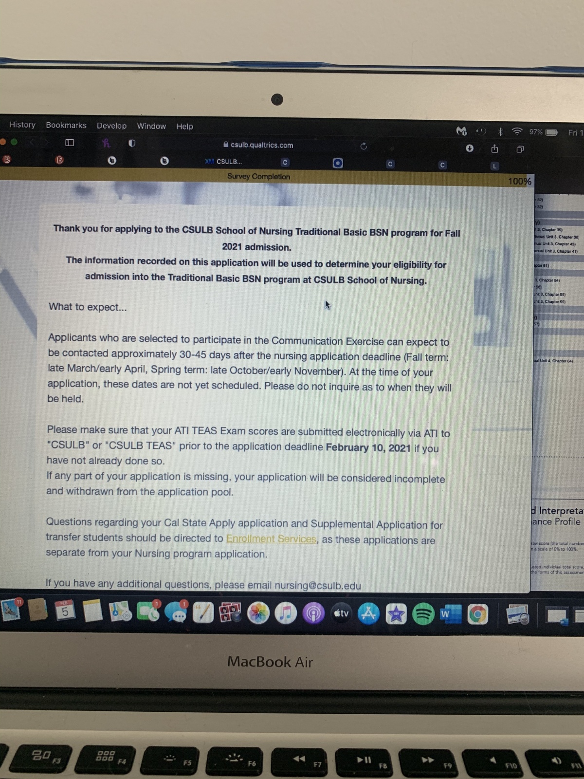 I sent an email to CSULB nursing back in early February and she stated, “Unfortunately, our application does not generate an automatic email confirmation”, so no one receives a confirmation haha. I did email her asking her to confirm that my application was received and it was a couple months ago