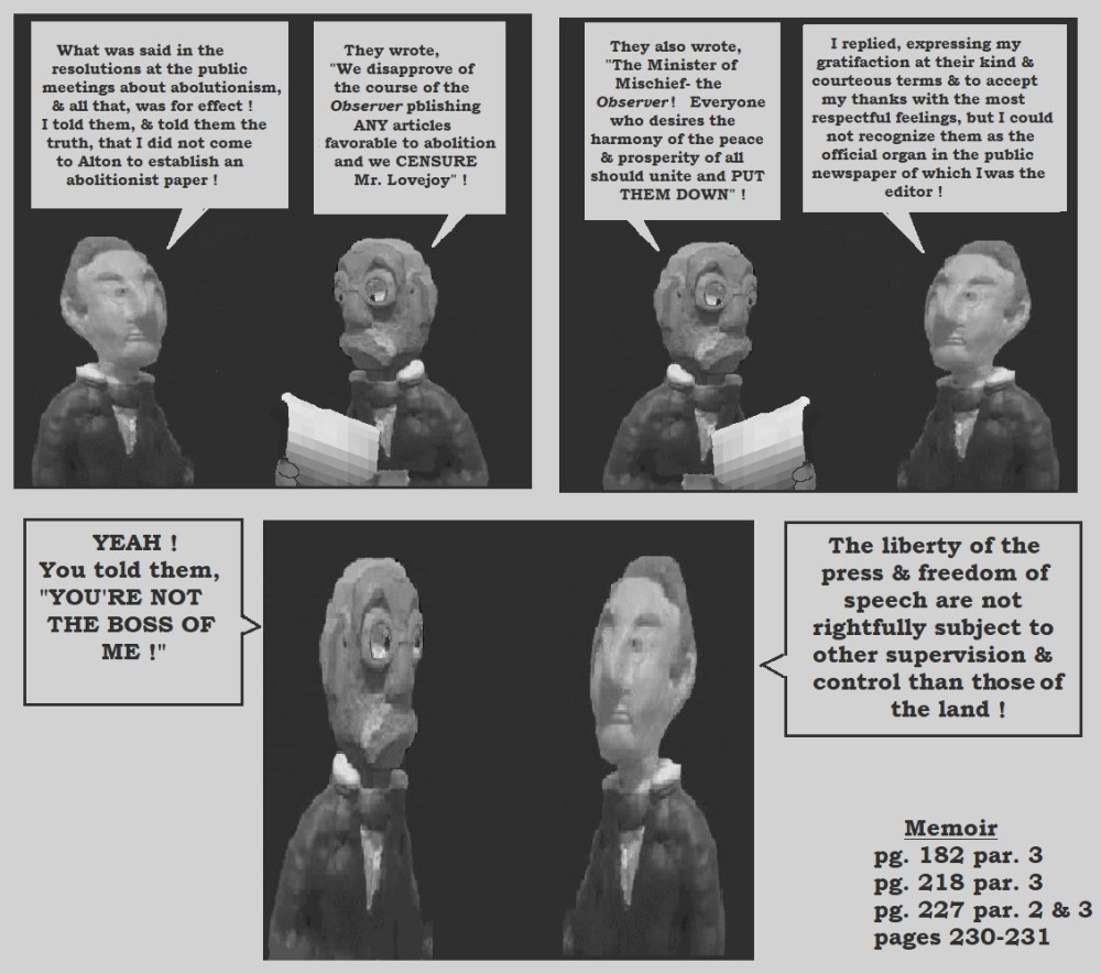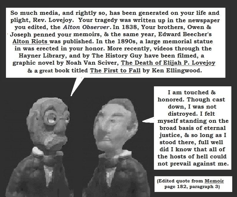 Sorry, not taking away from the work you have done. I have attended a few lectures on American History and never come across the name Elijah Lovejoy, so next time I see the lecturer I will ask him. The lectures tend to be about Civil Rights era and what he calls "The Gilded Age".
