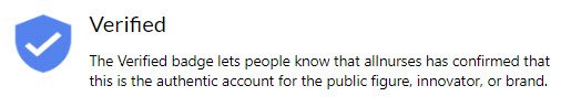 A first for us ... The Verified badge lets people know that allnurses has confirmed that this is an authentic account for the public figure, innovator, or brand.