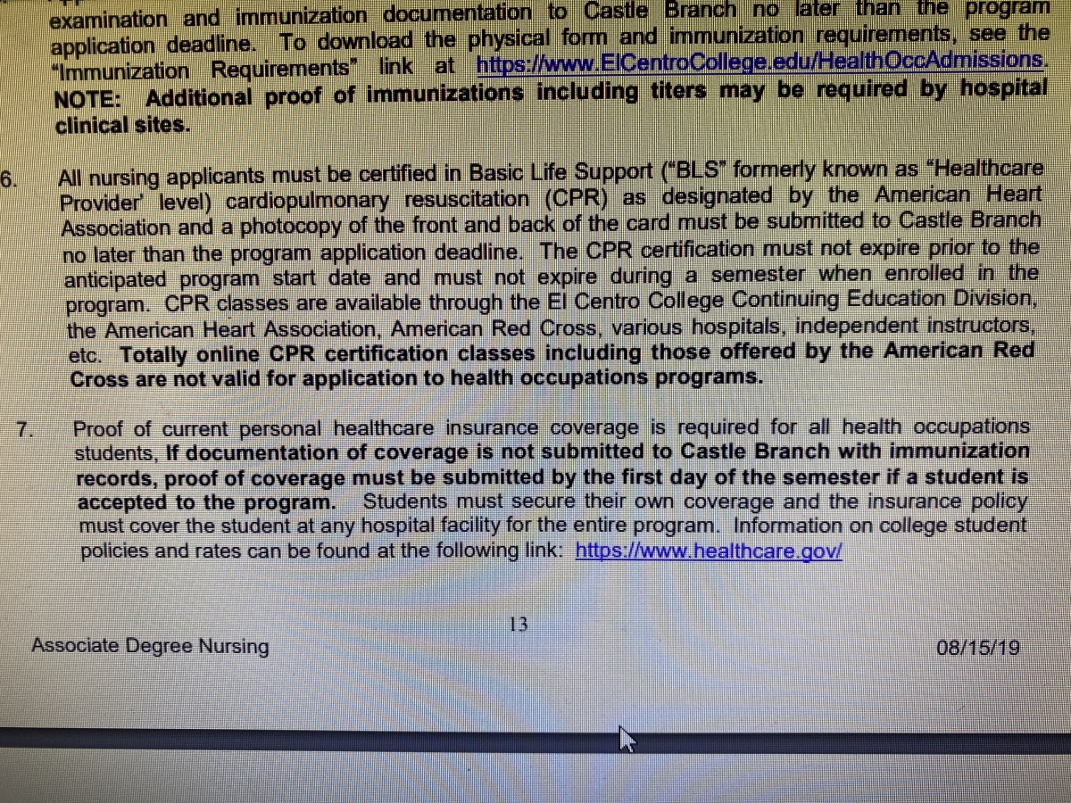 I went to go submit my application to the El Centro Paramount building in Downtown Dallas, room 101. I submitted 3 pieces of paper in an envelope with my name and program that I am applying for. I submitted my application, student statement of responsibility, and Hesi score. I asked the lady if she could look over it and she said she could only tell me that those 3 items should be in there, she isn't allowed to check over it I guess. I asked about Castlebranch, and flu shot isn't due until after we are accepted/start school/ after the NEW flu shot comes out for 2020. I submitted the one from last year, 2019, and it was rejected. She said our apps wont be rejected for no flu shot. Seems like common sense but I didnt know. Hope this helps someone else not feel so lost...