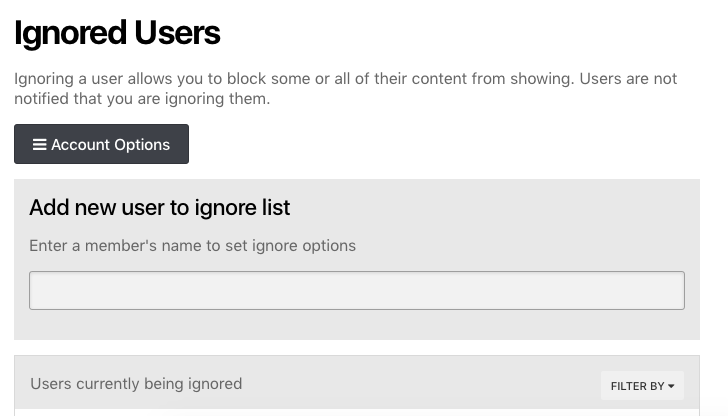 Right. We're done. Can someone please tell me if there's an option to ignore someone so you don't see their posts and how you enable it?