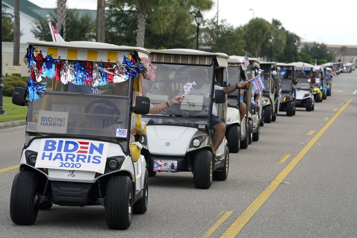 Well, a new 500 patriotic flag + banner festooned golf cart parade occurred Wednesday, gathering at one of the recreation centers then headed over to the elections office to drop off votes for BIDEN.
