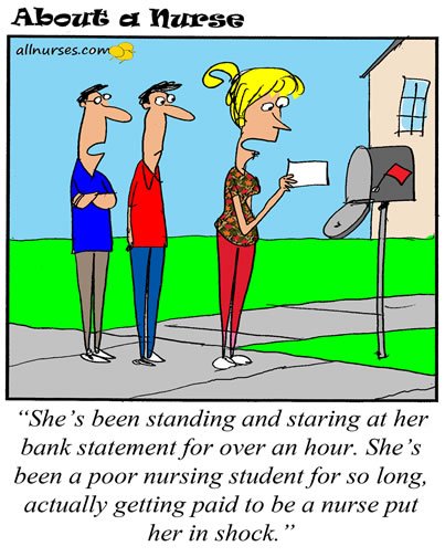 All that time in nursing school had to pay off sooner or later. I'm sure many felt elated, many were ecstatic, and many just wanted to blow it all away. Do you remember your first paycheck? How did you feel? Did you celebrate? Please share your stories...