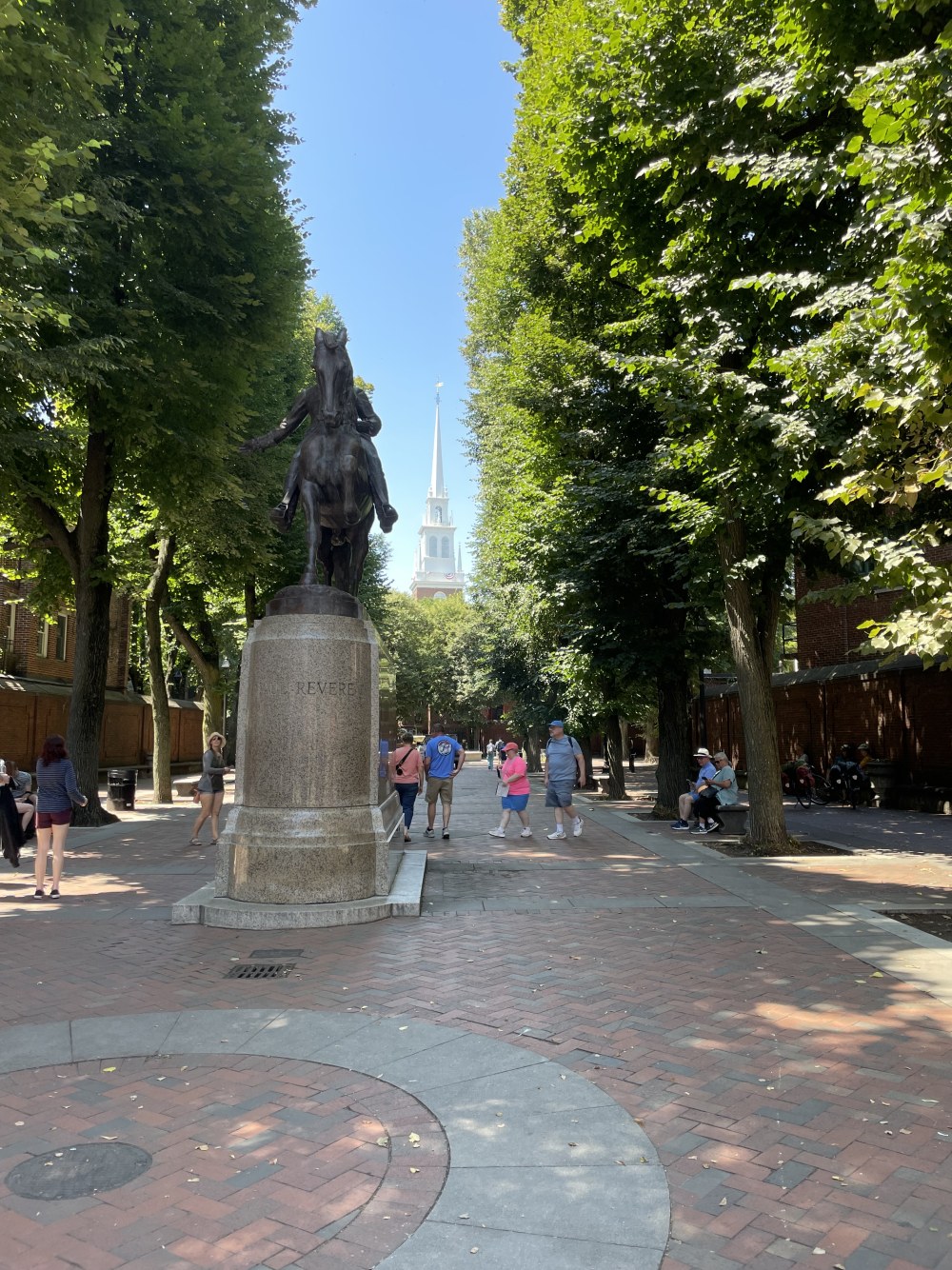 Paul Revere and the steeple of the old north church.
