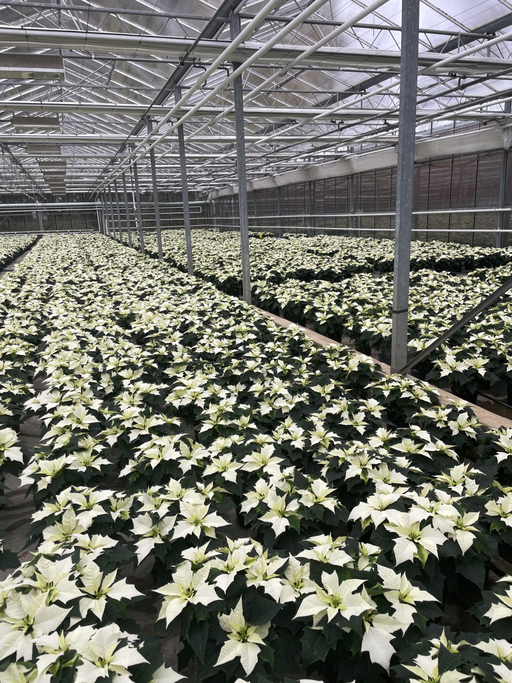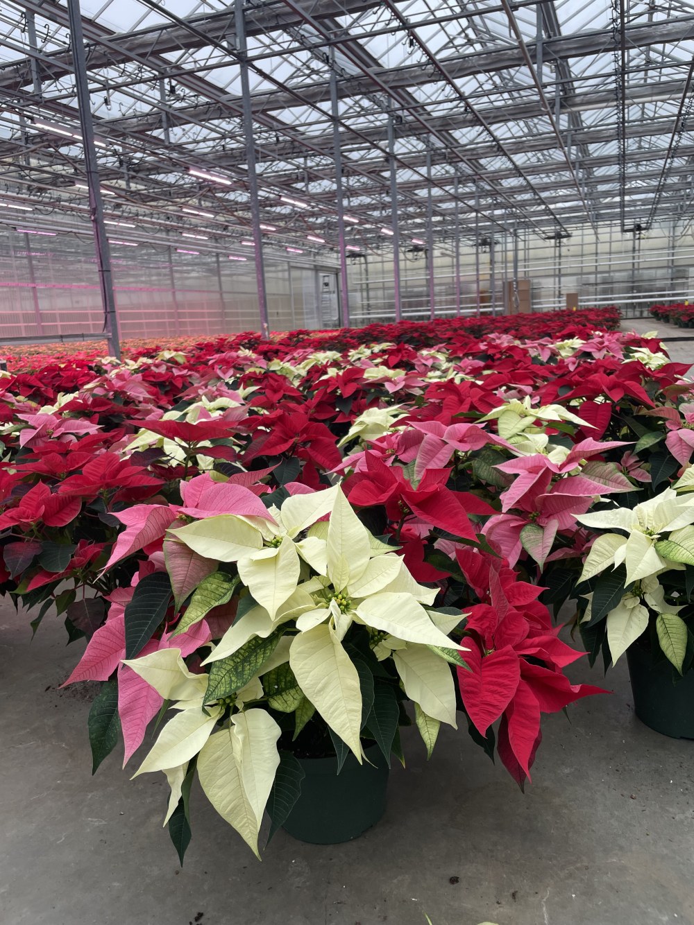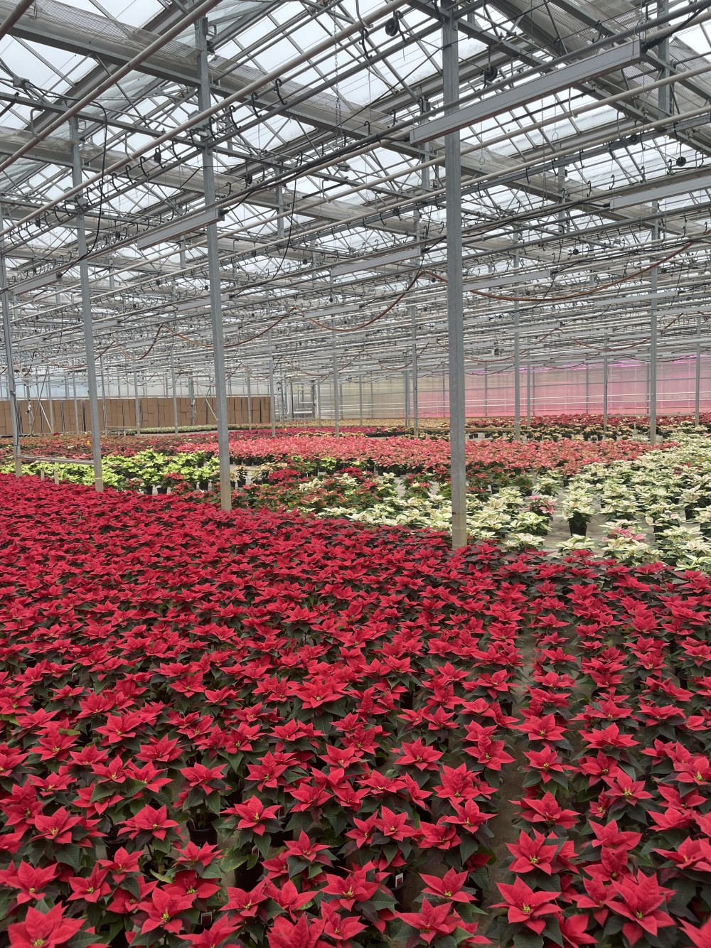 Here are some pics of the poinsettia greenhouses we toured on Saturday. They grow hundreds of thousands of plants wholesale, and they have a retail store onsite. A few plants followed us home, LOL.