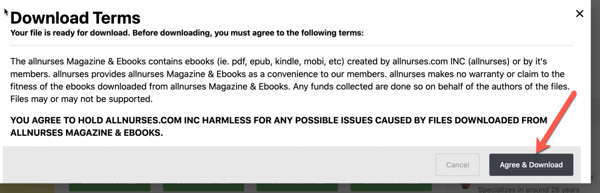YOU AGREE TO HOLD ALLNURSES.COM INC HARMLESS FOR ANY POSSIBLE ISSUES CAUSED BY FILES DOWNLOADED FROM ALLNURSES MAGAZINE & EBOOKS.