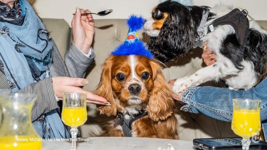 "Mason and Milo, Cavalier King Charles spaniels, celebrate a birthday party at Dogue in San Francisco. The restaurant caters to canines with a tasting menu that starts at $75 per dog."