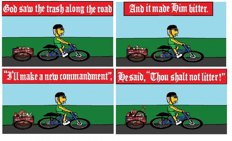 About once a week, I police the roadway that runs through the valley for litter. An idea for a sign on the utility pole was inspired.