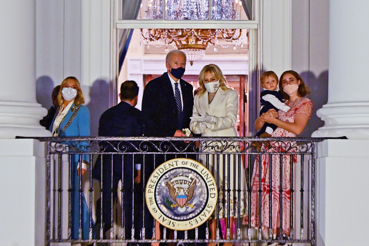 Biden family watching fireworks 1/20/21 from the Blue Room Balcony