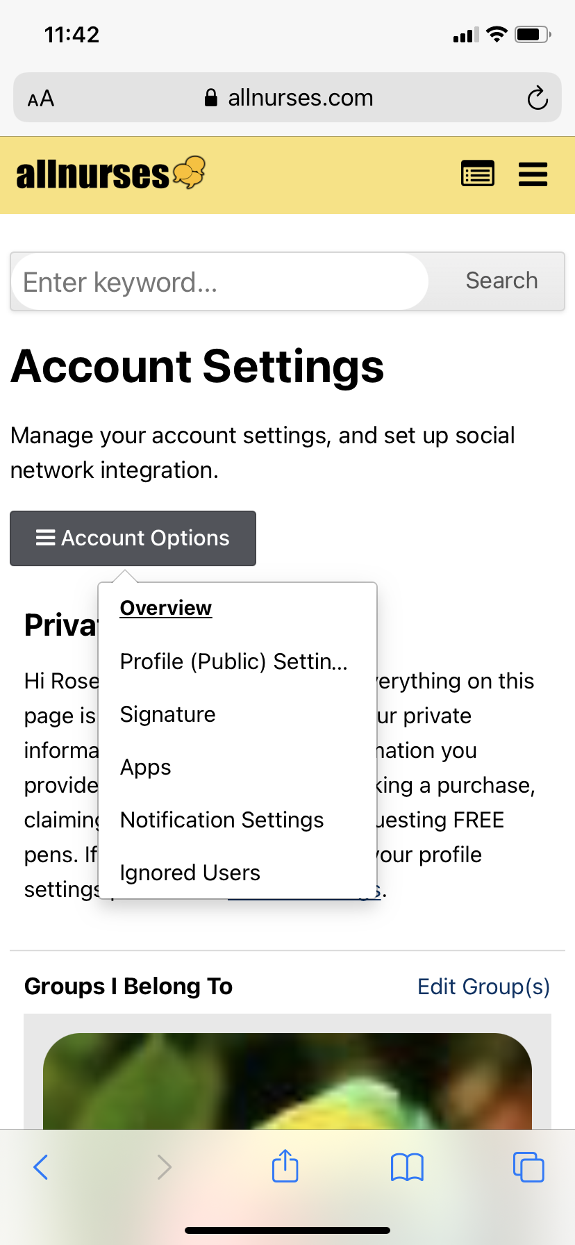 Thanks. Before I posted I tried to look for it. But I don't have an option that says "account options" and can't find the "Ignored Users" function. But like I said, it's not something I'd want to do.