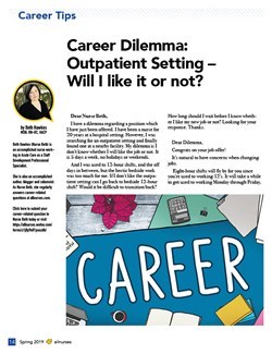 Dear Nurse Beth, I have a dilemma regarding a position which I have just been offered. I have been a nurse for 20 years at a hospital setting. However, I was searching for an outpatient setting and fi…