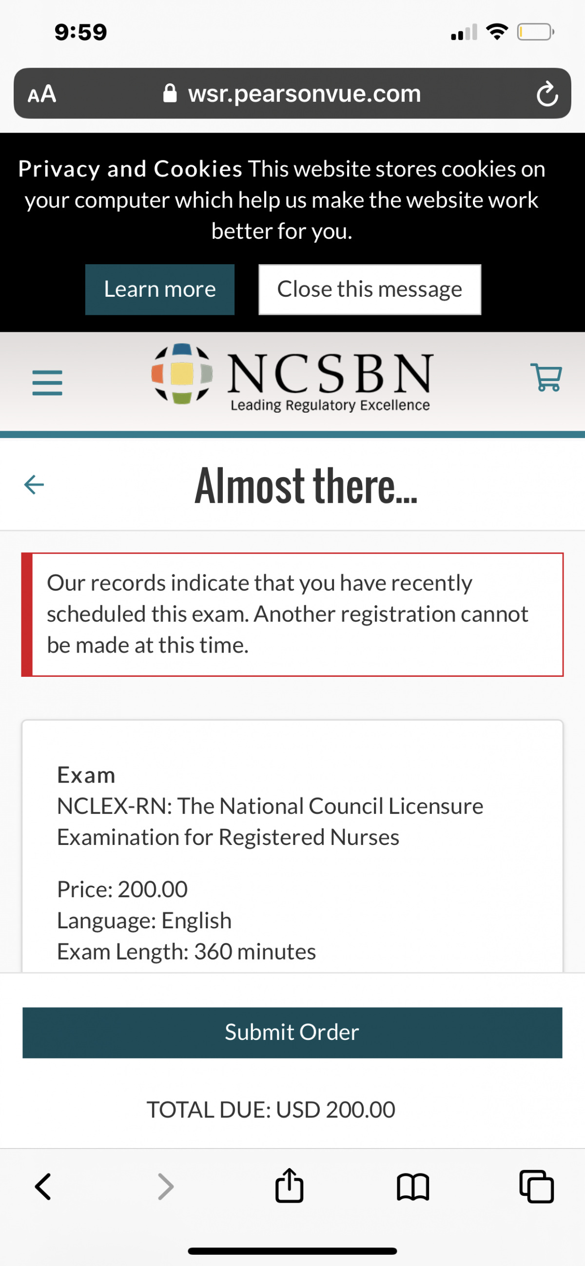 And so my story begins... I received an email from Pearson saying the usual “now that you’ve taken the test...” I tried to do the PVT trick using an accurate card number but incorrect expiration/cvc entries. My card got declined. I decided to leave it alone and read blogs and posts about the PVT. Fast forward to last night, 26 hours after my test ended, I did the trick again. I got so excited to see the good pop up! It gave me some relief. Now today, I woke up early and anxious. I told myself to do the PVT trick again and so I succumbed to it. Now, the screen totally changed. I no longer see the “our records indicate...” pop up but actually allowing me to reregister even with incorrect credit card information. At this point, my anxiety is through the roof. I don’t know what to make of this. I will just wait and see when I pay for my quick results tonight.