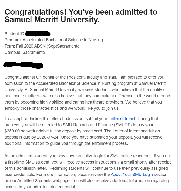 They are unprofessional and it is beginning reflect on SMU/the ABSN program as a whole. I have made my decision to go with my other choice. Good luck to everyone here!