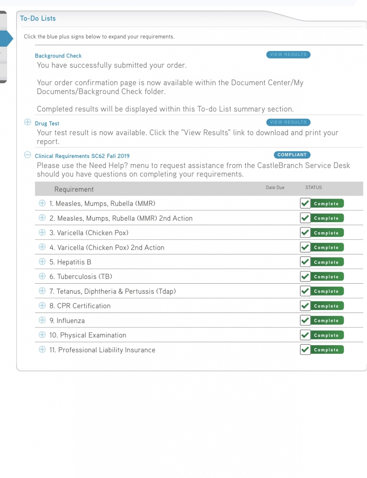 I have been working on getting everything submitted to Castle Branch.