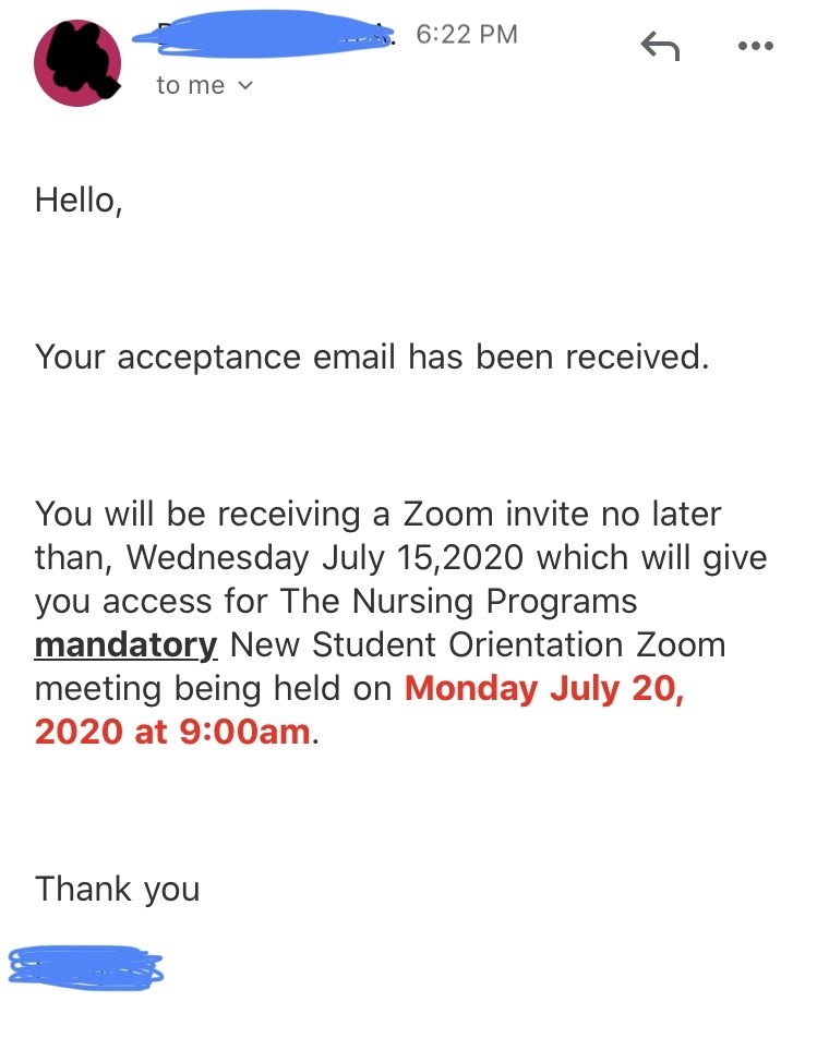 I'm not sure if they're going to email everyone, though. She may have just sent this to me because I emailed her earlier asking whether the nursing department email had been misspelled in the acceptance letters.
