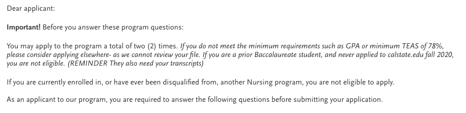 ALSO, on the Program Materials>SJSU BSN Fall 2021>Questions tab, it says this: