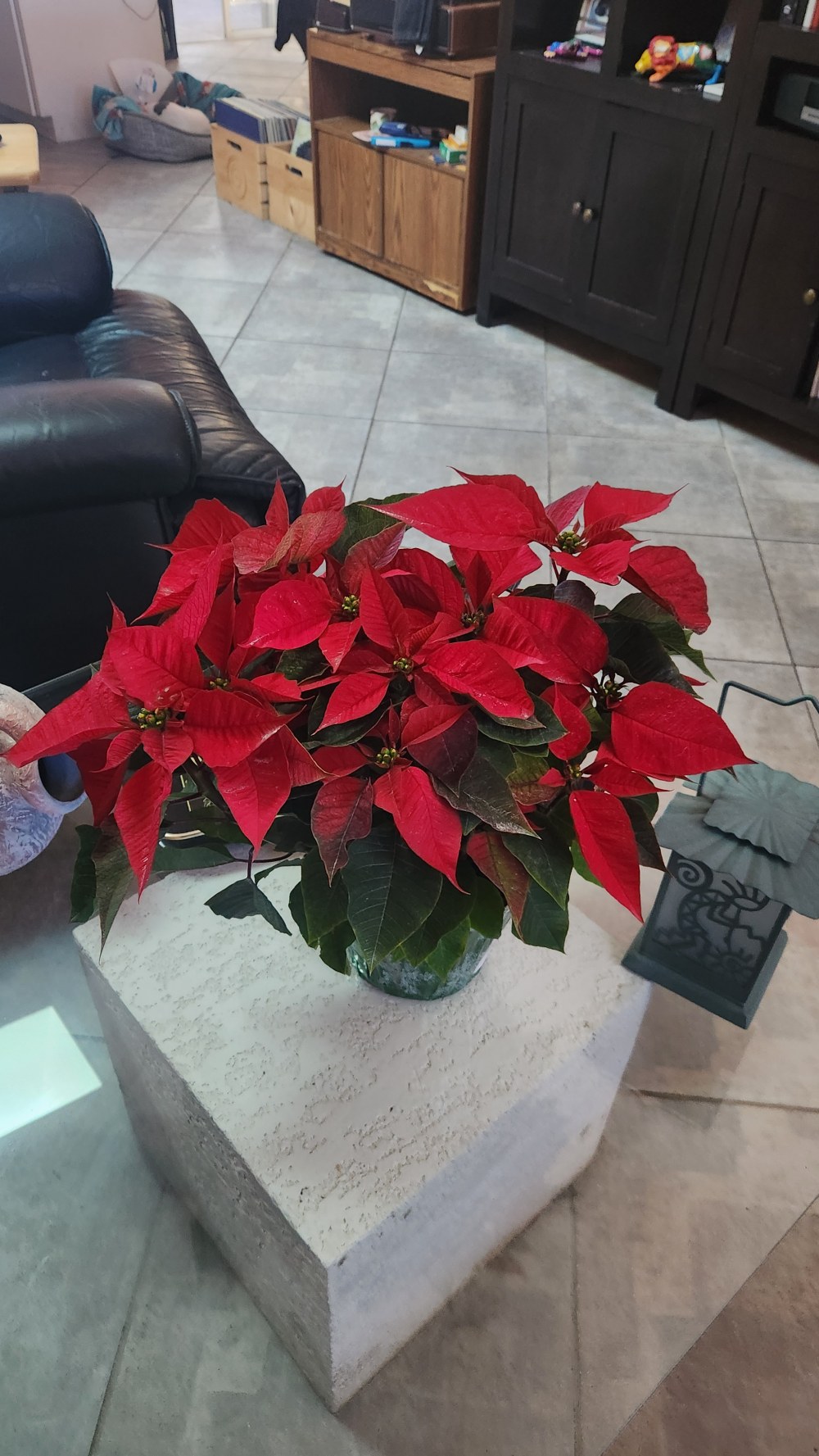I got a poinsettia as my only Christmas decoration this year. They had a very nice big one for $29.99 but this was on sale for $9.99