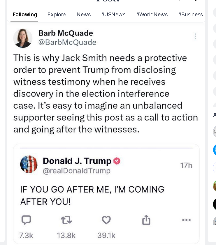 Quote...the Trump campaign then issued a statement insisting his post was not a threat of revenge but rather "political speech".