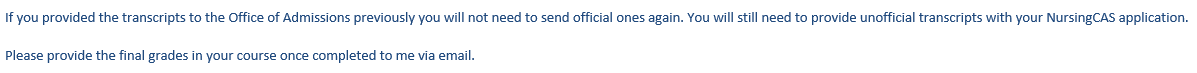 I would email! But I think you should be fine, as long as you have your unofficial submitted through nursing cas. I know that my transcripts took like 8 weeks to be sent in, I’m lucky I submitted it early. The whole covid situation, they should be understanding of delays!